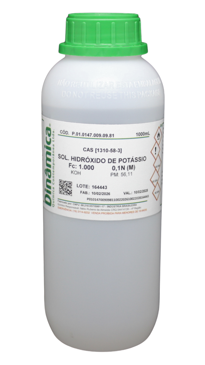 Solução alcoólica hidróxido de potássio 0,1N / 0,1M.